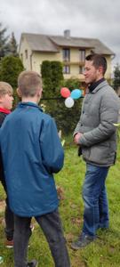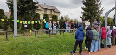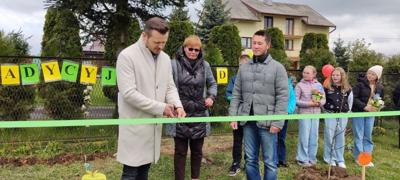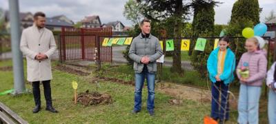 Nadszedł wreszcie oczekiwany przez nas dzień. W poniedziałek 22 kwietnia, w Dniu Ziemi, postanowiliśmy uroczyście otworzyć nasz przyszkolny Mini Sad. Niestety pogoda nam robiła psikusa. Aura była deszczowa, a rankiem nawet padał śnieg z deszczem. Ale tak to jest w kwietniu, jak podpowiada polskie ludowe przysłowie: Kwiecień plecień, bo przeplata: trochę zimy, trochę lata. Jednak to nie przeszkodziło naszym planom. Już wszystko przygotowane. Kolorowy napis w Mini Sadzie powieszony. Zasadzone jabłonie, krzewy i zasiana kwietna łąka. Piękne identyfikatory umieszczone przed jabłoniami. Barwne balony ozdabiają siatkę ogrodzeniową. I nadeszła godz. 11.45. Wraz z zaproszonymi Gośćmi: Panem Dyrektorem, Panem Sebastianem z rodziną, naszymi Opiekunkami i uczniami klasy IV i VIa wybraliśmy się do Mini Sadu, by uroczyście dokonać jego otwarcia.