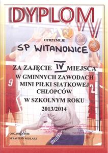 *IV miejsce w gminnych zawodach sportowych Mini Piłki Siatkowej Chłopców- 27 I 2014