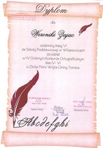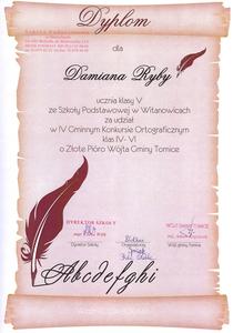 *tytuł wicemistrza ortografii gminy Tomice w grupie kl. IV - VI dla Justyny Russek