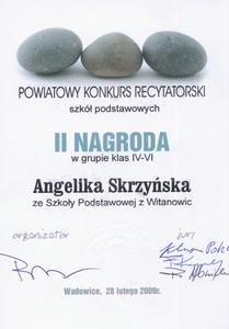 *II miejsce w powiatowym konkursie recytatorskim dla szkół podstawowych /Angelika Skrzyńska - rok 2009/