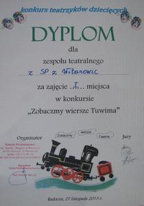 *I miejsce w konkursie teatrzyków dziecięcych w Radoczy "Zobaczmy wiersze Tuwima" - 27 XI 2013 r.