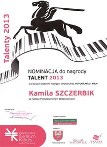 *nominacja do nagrody Talent 2013 w kategorii Fotografia i Film dla Kamili Szczerbik