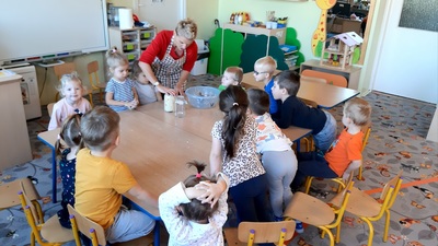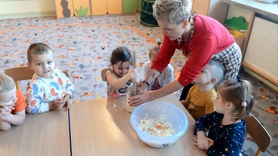 Zimowe zapasy- kiszenie kapusty u biedronek