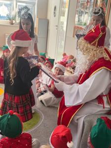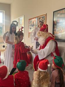 Dzień jak co dzień....a jednak od rana dzieci nie mogły doczekać się Mikołaja, który pojawił się w naszym nowym przedszkolu. Radość świętowała na twarzach dzieci, ponieważ to wlasnie On zakupił wszystkim bilety do Parku Fantazja. Dziękujemy Mikołaju.