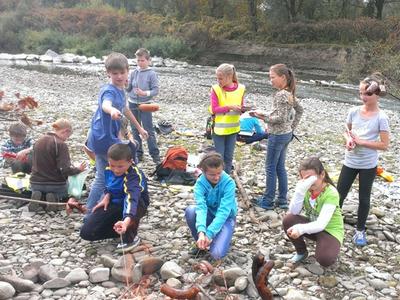 Rajd uczniów klas IV - VI po naszej okolicy, który miał miejsce w dniu 10 października 2013 roku. Finał rajdu odbył się nad rzeką Skawą, gdzie uczniowie zapalili ogniska i zjedli pyszne kiełbaski oraz pieczone ziemniaczki.