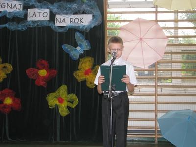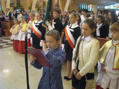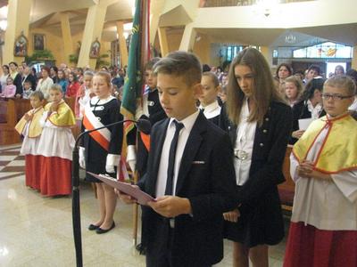 Tak szybko minął czas wakacji. Z nowymi siłami i pełni entuzjazmu wróciliśmy do szkoły. W poniedziałek 1 września 2014 roku o godz. 8.30 uczestniczyliśmy we Mszy Św., a następnie udaliśmy się do budynku szkoły. Na sali gimnastycznej po oficjalnych powitaniach uczniowie kl. V pod kierunkiem pani Beaty Kokoszki przedstawili montaż słowno - muzyczny nawiązujący do 75 rocznicy wybuchu II wojny światowej. Po uczczeniu pamięci poległych za Ojczyznę, nie zabrakło radosnego wątku pożegnania lata i przypomnienia, iż za 10 miesięcy "...znów będą wakacje."
