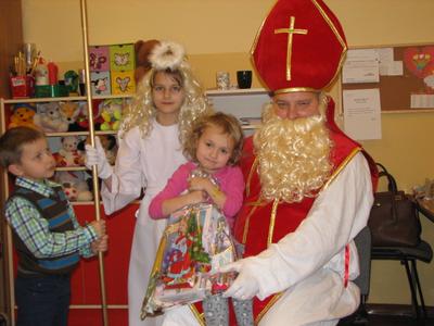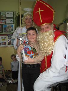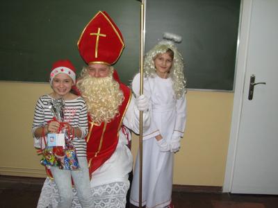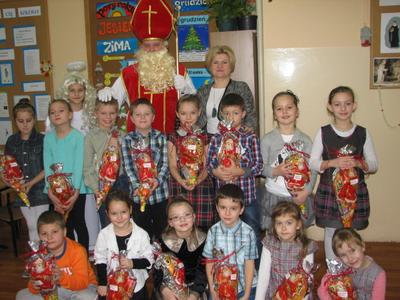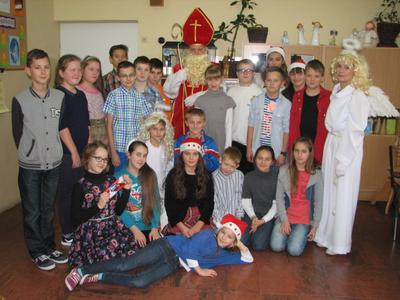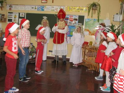 W piątek 5 grudnia 2014 roku z radością spotkaliśmy się w klasach ze św. Mikołajem. Niespodzianek było niemiara. Wiele słodkości, wspaniałych piosenek i wierszy, uśmiechów, a nawet wyjazdy do kręgielni, kawiarni czy teatru. Nasz Święty z Nieba wie, jak sprawić nam przyjemność. My staraliśmy się odwzajemnić jego hojność nie tylko słowem, ale i przygotowanymi rysunkami i niespodziankami. Oczywiście zaprosiliśmy św. Mikołaja, by odwiedził nas również w przyszłym roku.