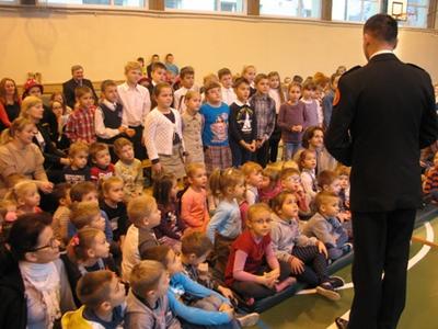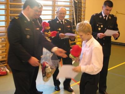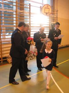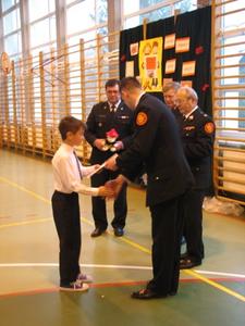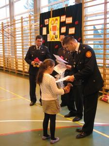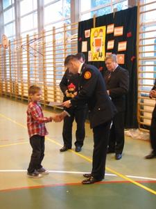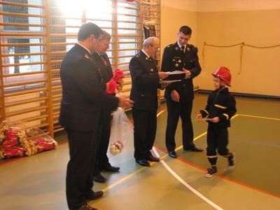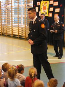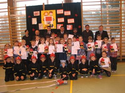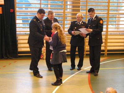 Na zakończenie projektu "Jestem Mały Wiem Więcej" 16 grudnia 2014r. uczniowie klasy II i III otrymali certyfikaty, maskotkę oraz mundurki strażackie koszarowe z rąk zastępcy dyrektora ZW ZOSP RP województwa małopolskiego magistra inż. Łukasza Smółki oraz komendanta PSP w Wadowicach Pawła Kwarciaka.