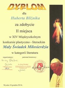 Hubert Bliźnik z kl II zdobywca II miejsca
