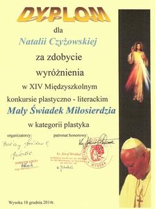 wyróżnienie Natalia Czyżowska z kl. Ia