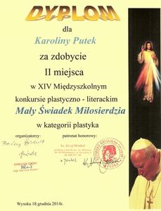 W czwartek 18 grudnia 2014 roku w Wysokiej odbył się finał XIV międzyszkolnego plastyczno - literackiego konkursu Mały Świadek Miłosierdzia, który adresowany był do uczniów klas 0-III. Honorowy patronat objęli nad nim pani Ewa Filipiak /była burmistrz Wadowic/ oraz proboszczowie Parafii Wysoka i Witanowice. Na konkurs w tym roku z całego powiatu wadowickiego wpłynęło 327 prac, z czego 30 prac zostało nagrodzonych. Każdy uczestnik konkursu otrzymał równiez pamiątkowy dyplom.