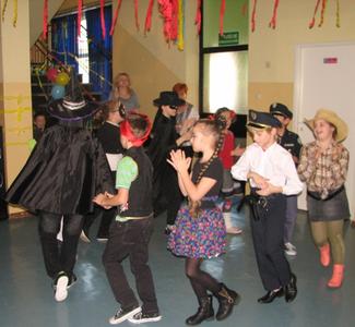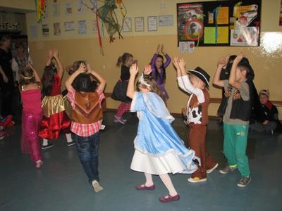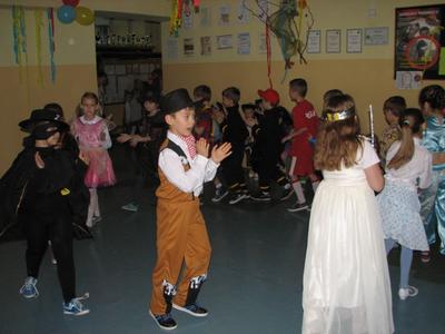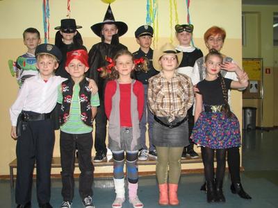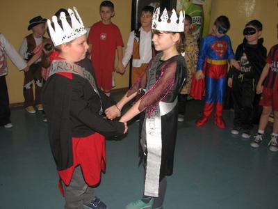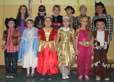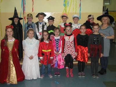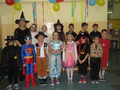 Szał karnawałowy nie ominął również uczniów klas I - III. W "Tłusty Czwartek" świetnie bawili się podczas zabawy karnawałowej. Dzieci bawiły się pod okiem swoich wychowawczyń, a zabawy prowadziła p. Dorota Klaja. Dzieci przebrały się w najróżniejsze postacie bajkowe i nie tylko. Były księżniczki, królewicze, motylki, czarownice, strażacy, policjanci oraz wiele innych postaci. Zabawę rozpoczęto zabawą integracyjną pt. „ Piosenka powitanka”, która wprowadzała w przyjemny nastrój. Na zabawie nie brakło też innych atrakcji. Były konkursy na wesoło m.in. „Taniec w parze z balonem”. Następnie uczniowie udali się na podróż po świecie - tańcząc tańce narodowe i regionalne niektórych krajów. Nie zabrakło tańców z Polski, z Francji, Czech czy też Chorwacji. Wszyscy chętnie podjęli wspólną zabawę. Ważnym punktem były wybory Króla i Królowej balu. Zostali nimi Julia Orzechowska z klasy II oraz Kamil Mozgała z klasy Ia. Jak zawsze niesamowite emocje wzbudziła loteria fantowa. Każdy uczestnik zabawy z ochotą stał w długiej kolejce po te upragnione niespodzianki. W małej przerwie dzieci posiliły się poczęstunkiem przygotowanym przez Radę Rodziców - był to tłustoczwartkowy pączek, otrzymali także soczek. Pod koniec zabawy dzieci mogły pośpiewać piosenki karaoke. Ostatnią zabawą był znany taniec z miotłą pt. Miotlarz. Wszyscy świetnie się bawili.
