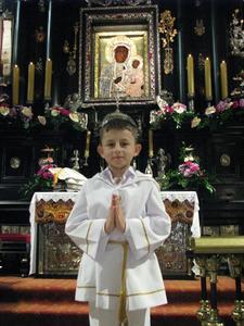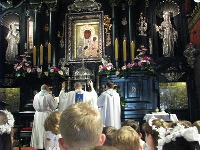 W czwartek 7 maja 2015 roku uczniowie klasy III wraz z kolegami i koleżankami z Parafii Witanowice udali się w podróż dziękczynną do Tronu Matki Bożej Królowej Polski. Tu przed Jej Cudownym Obliczem dziękowali za swoje rodziny, a zwłaszcza za dar pierwszego pełnego spotkania z Jezusem w Sakramencie Pokuty i Eucharystii. W Kaplicy Cudownego Obrazu uczestniczyliśmy w dziękczynnej Mszy Św. Następnie pod przewodnictwem Ks. Proboszcza Józefa Wróbla odprawiliśmy niezapomnianą Drogę Krzyżową na Wałach Jasnogórskich. Później udaliśmy się do autokaru, aby przebrać się w bardziej sportowy strój, po czym każdy z nas coś przekąsił, gdyż była to już pora obiadowa. Gdy wzmocniliśmy siły fizyczne rozpoczęliśmy zwiedzanie Sanktuarium Jasnogórskiego. Każdy według swego planu, gdyż wędrówkę przeżywaliśmy indywidualnie pod opieką rodziców, którzy nam towarzyszyli. Oj, było co zwiedzać. Był czas na dokładne obejrzenie Skarbca Jasnogórskiego, podziwianie panoramy z wieży, zakup pamiątek i oczywiście indywidualną modlitwę. Niestety, czas płynął bardzo szybko i musieliśmy wyjeżdżać z Częstochowy. W autobusie dzieliliśmy się wspaniałymi wrażeniami, bowiem prawie wszyscy po raz pierwszy odwiedzili Duchową Stolicę Polski - Częstochowę. Dalsze wrażenia przekazywaliśmy na lekcjach i katechezie. Jesteśmy wdzięczni, iż z nami pielgrzymowały: Pani Katechetka i Pani Wychowawczyni, którym bardzo dziękujemy za opiekę i współorganizację tej niezapomnianej wycieczki do Częstochowy.