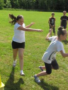 Kolejny Dzień Dziecka, kolejna Szkolna Olimpiada Sportowa ale jakaś inna. Dlaczego inna? Ponieważ znowu jak kiedyś razem. Gry i zabawy , zmagania sportowe, poczęstunek słońce to wszystko co spotkało dzisiaj naszych uczniów w szkole. Młodsi bawili sie pod opieką swoich pań wychowawczń, a uczniowie klas IV - VI brali udział w poszczególnych dyscyplinach sportowych. Po oficjalnym rozppoczęciu uroczystości przez pana Dyrektora Szkoły przystąpiliśmy do boju.