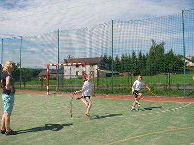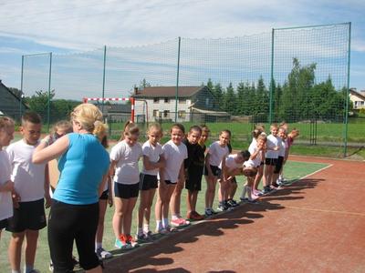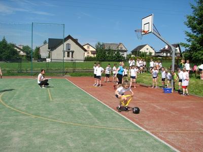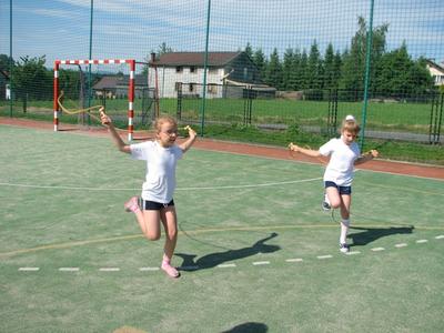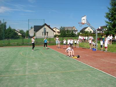 Zabawy sportowe prowadziły i przygotowały Panie D. Klaja i N. Sikora. W przeprowadzeniu zabaw dzielnie pomagały panie B. Jasińska i R. Iciek.