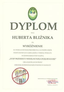 Hubert Bliźnik, kl. II – wiersz pt. „Nie będę obojętny”