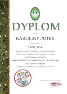 Karolina Putek, kl. III, - praca pt. „Jeżeli zadzwonisz, uratujesz komuś życie”