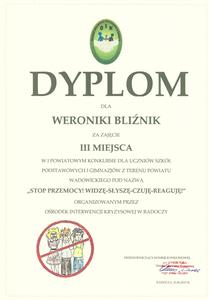 Weronika Bliźnik, kl. V, praca pt. „Zareaguj, to nie boli,”