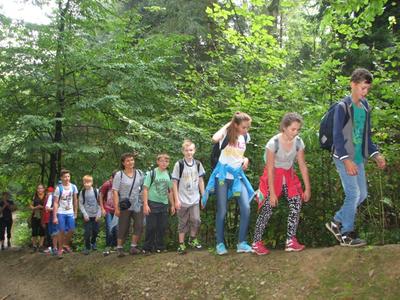 We wtorek 15 września 2015 roku o godz. 830 uczniowie klas IV – VI pod opieką nauczycieli i rodziców udali się na jesienne wędrowanie. W tym roku miejscem docelowym był Leskowiec. Pogoda nam sprzyjała, humory też. Wędrówkę rozpoczęliśmy od miejscowości Ponikiew. Tu dojechaliśmy autokarem. Na wstępie wyprawy Panie przypomniały nam zasady górskich wędrówek oraz kulturę zachowania. Na szczyt góry wędrowaliśmy szlakiem niebieskim oraz serduszkowym. Podziwialiśmy piękno przyrody, oryginalne kapliczki, wsłuchiwaliśmy się w śpiew ptaków i szum drzew. Niektórzy z nas mieli niewygodne buty, innym brakowało kondycji, ale wzajemne wsparcie pomogło nam pokonać wszystkie trudności i szczęśliwie dotrzeć do celu. Dotarliśmy na Groń Jana Pawła II, a potem na Leskowiec. Jak przystało na prawdziwych turystów, nawiedziliśmy również Schronisko, gdzie posililiśmy się i zakupiliśmy pamiątkowe widokówki, które opieczętowaliśmy pieczątkami związanymi z tym miejscem. Wróciliśmy z wyprawy ok. 15.30. Większość z nas stwierdziło, iż lepiej było iść w górę, niż schodzić w dół. Niektórzy z nas mocno narzekali na ból palcy u stóp. Mimo tych bolączek, możemy śmiało stwierdzić, iż był to wspaniale spędzony czas. Wielu z nas chciałoby powtórzyć go jeszcze raz. Zapraszamy więc wszystkich na górskie szlaki turystyczne.