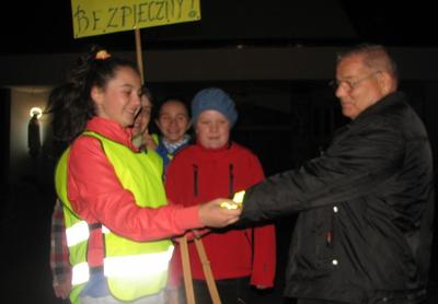 Jakież wielkie było nasze zaskoczenie, że akcja ta naprawdę była bardzo potrzebna. Rozdaliśmy 150 odblasków i niestety chętnych po nie było jeszcze wiele osób. Cieszyliśmy się, że dużo osób starszych założyło opaski odblaskowe na ręce, a małe dzieci przypięły do swych kurtek.