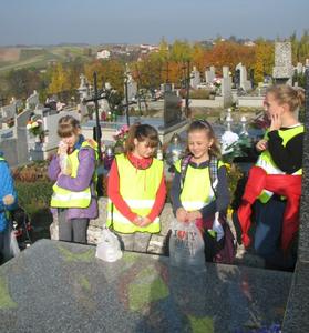 Dnia 29 października 2015 roku troje przedstawicieli Samorządu Uczniowskiego udało się wraz z Panią Anną Mozgałą – Jazowy i Panem Tadeuszem Kasperkiem na cmentarze w Tłuczani, Radoczy i Tomicach, aby oddać cześć Zmarłym, którzy byli zaangażowani w życie naszej szkoły. Po powrocie do szkoły uczniowie klas IV-VI wybrali się z wychowawcami na witanowicki cmentarz, gdzie również oddawaliśmy hołd Osobom, które uczyły w naszej szkole. Zapalone znicze, złożone kwiaty i gorąca modlitwa nad mogiłami Zmarłych nauczycieli, kapłanów i poległych w obronie naszej Ojczyzny – to skrót naszej wędrówki na parafialny cmentarz. Oczywiście każdy z nas mógł również podejść na rodzinną mogiłę i westchnąć modlitewnie za bliskich do Miłosierdzia Bożego.