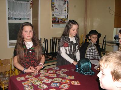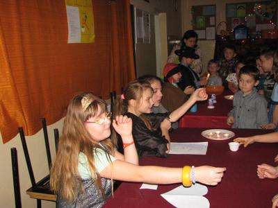 w salonie wróżb by wszyscy odważni dowiedzieli się, co ich czeka. I tak ulewano roztopiony wosk na wodę, a następnie interpretowano przyszłość z kształtu powstałych figurek, wróżono z karteczek z imionami, rzucano trzewikiem, przestawiano buty, obierano jabłka. Wróżbom, żartom i śmiechom nie było końca.
