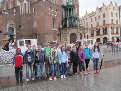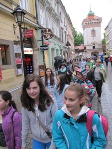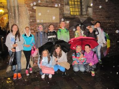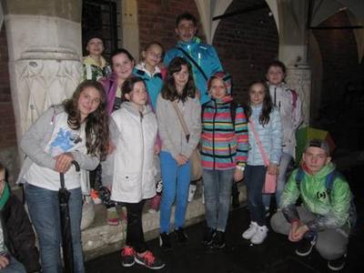 13 maja w piątek uczniowie klasy V z wychowawcą i rodzicami wyjechali na Noc Muzeów do Krakowa. Dwa tygodnie wcześniej dzięki akcji uczniów, rodziców i wychowawcy udało się zarezerwować wejścia do Wieży Ratuszowej i Krkowskich Podziemi na Rynku Głównym. Ponadto udało nam się wejść i zwiedzić Barbakan, Mury Obronne, Collegium Maius. Zwiedziliśmy również Sukiennice i spacerowaliśmy po jakże uroczych uliczkach przy Krakowskim Rynku. I tylko w jednym punkcie naszego programu zostaliśmy pokonani przez deszcz. Jego inensywność sprawiła, że nie zdołaliśmy przejść na Wawel. Jednak ten niedosyt pozostawiliśmy do zrealizowania w przyszłym roku. Mimo deszczu warto było pojechać, a Kraków nocą i w dodatku w strumieniach deszczu też jest piękny.