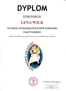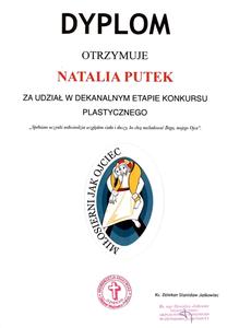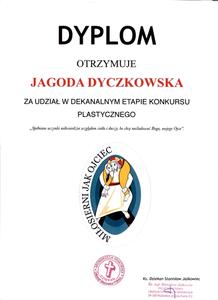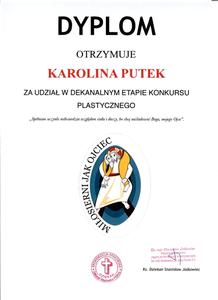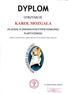 Był to ostatni etap konkursu, który składał się z etapu: klasowego, szkolnego, dekanalnego i diecezjalnego. Z naszej szkoły brali w nim udział uczniowie klas 0 - IV. Do etapu szkolnego wpłynęło 19 prac. Jury wyłoniło te najpiekniejsze i awansowała do etapu dekanalnego. Były to prace: