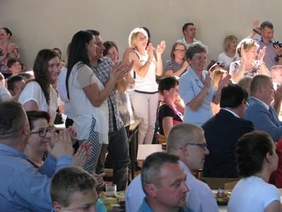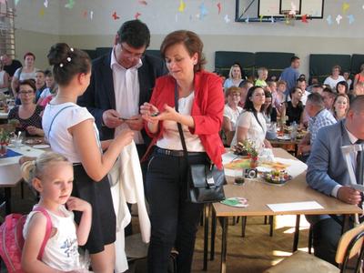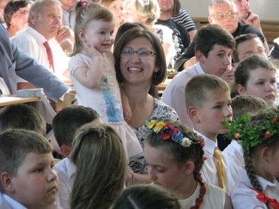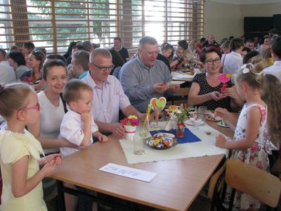 W sobotę 4 czerwca 2016 r. w naszej szkole przeżywaliśmy po krótkiej przerwie XVI Szkolny Dzień Rodziny. Na tą wyjątkową uroczystość przybyło wielu zaproszonych gości. Montaż słowno-muzyczny przygotowały dzieci z oddziałów przedszkolnych oraz klas I-III pod czujnym okiem swoich wychowawców. Ciepłe i miłe słowa powitania padły z ust pana Dyrektora. Uczniowie przenieśli nas w miejsca, które odwiedzają z rodziną. Rodzice z dumą i łzami w oczach przysłuchiwali się pięknej recytacji wierszy, która przeplatała się z wesołymi piosenkami. Nasze dzieci kolejny raz udowodniły, że prócz talentu krasomówczego oraz wokalnego drzemie w nich również duży potencjał taneczny. Akcentem wieńczącym całość spotkania było wspólne odśpiewanie przez dzieci piosenki, którą dedykowano rodzicom. Następnie dzieci wręczyły rodzicom przygotowane prezenty. Na zgromadzonych czekała nie tylko uczta duchowa, wszyscy goście zostali zaproszeni na słodki poczęstunek.