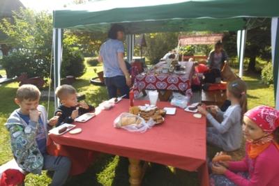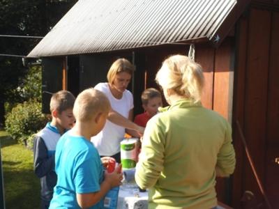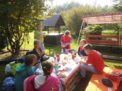 Miejscem docelowym rajdu był ogród u Państwa Mrowców i Państwa Twardowskich. Tutaj czekały na nas atrakcje – pieczenie kiełbasek, słodki poczęstunek, tańce i zabawy integracyjne. Wszystko to odbywało się w przyjaznym otoczeniu i pięknej scenerii. Wszyscy bawili się wyśmienicie.