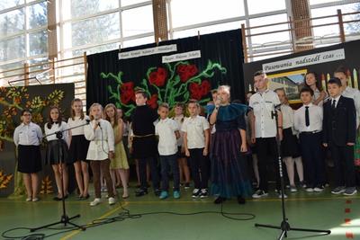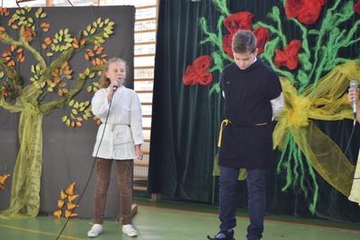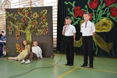 - Występ Samorządu Uczniowskiego i zespołu wokalnego – złożenie życzeń Pracownikom Oświaty i przybyłym Gościom z okazji Dnia Edukacji Narodowej.
