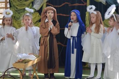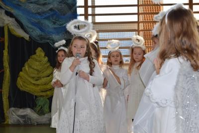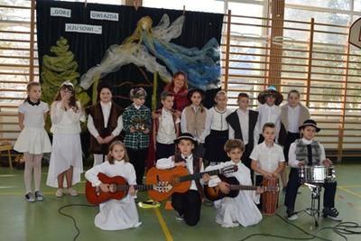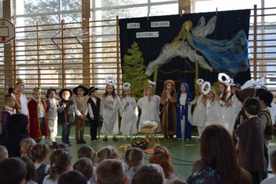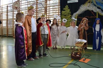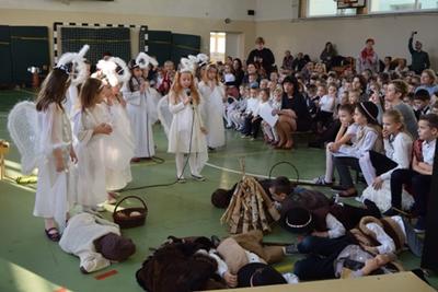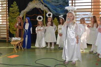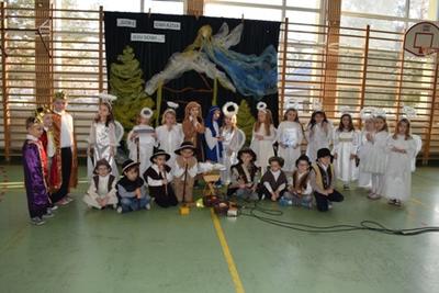 Tradycją naszej szkoły są coroczne jasełka przygotowywane przez dzieci z oddziału przedszkolnego pięcio-sześciolatków. 22 grudnia o godzinie 10.00 cała szkoła zgromadziła się na sali gimnastycznej. Na uroczystości pojawili się też rodzice, którzy chcieli zobaczyć swoje pociechy występujące na scenie, i którzy bardzo zaangażowali się w przygotowanie dla dzieci strojów. Piękna scenografia wprowadziła wszystkich w świąteczny nastrój.O dobrą zabawę i miłe doznania artystyczne zadbali zdolni, mali aktorzy. Przedstawienie pokazało scenki z życia Maryi, Józefa, Nowonarodzonego Dzieciątka, pasterzy, mędrców. Nad nimi czuwały anioły, które pięknie zatańczyły do pastorałki "Zagraj Dziecku kołysankę". Na zakończenie dzieci złożyły wszystkim obecnym życzenia.Jasełka pozwoliły poczuć atmosferę zbliżajacych się Świąt Bożego Narodzenia. Zbliżył się czas wspólnego kolędowania, nic więc dziwnego, że każda klasa odśpiewała przygotowaną kolędę razem z publicznością. To radosne kolędowanie było ubogacone nie tylko strojami kolędniczymi, ale także umiejętnościami gry na różnych instrumentach przez naszych uczniów. Atmosfera świąteczna udzielała się wszystkim.