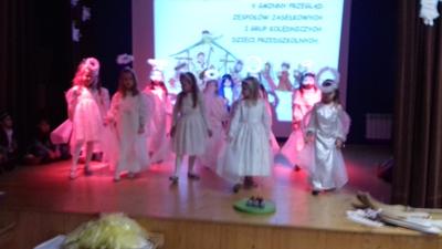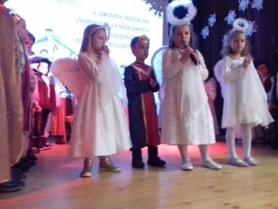 W dniu 16 stycznia 2017r. w Ośrodku Kultury w Tomicach odbył się „V Przegląd Zespołów Jasełkowych i Grup Kolędniczych” zorganizowany przez Dyrektora Zespołu Szkolno-Przedszkolnego w Tomicach. Dzieci z naszej szkoły z oddziału pięcio-sześciolatków zaprezentowały jasełka pt. „Zagraj dziecku kołysankę”. Na zakończenie przeglądu dzieci otrzymały dyplomy, figurę anioła oraz dużą paczkę słodyczy.