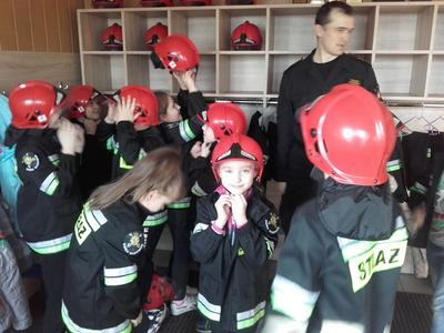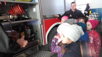 W ramach realizacji rządowej akcji „Ognik” klasy II a , II B udały się na wycieczkę do PSP w Wadowicach. Na wycieczce został zaprezentowany sprzęt pożarniczy stanowiący wyposażenie jednostki Straży Pożarnej. Oglądaliśmy wóz strażacki, sprzęt do gaszenia pożarów. Dzieci mogły usiąść za kierownicą, przymierzyć hełm strażacki. W sali multimedialnej wyświetlane były prezentacje z zakresu udzielania pierwszej pomocy w przypadku najczęstszych zdarzeń w domach oraz gospodarstwach domowych. Z kolei w pomieszczeniu do prezentacji typowego mieszkania podziwialiśmy m.in. zadymiarki teatralne, autonomiczne czujki dymu, przeciwpożarowy wyłącznik prądu oraz oprawy oświetlenia ewakuacyjnego z piktogramami. Był też kominek ze sztucznym ogniem, telefon służący do wzywania pomocy oraz „gorące drzwi”, które razem z wydobywającym się dymem sygnalizowały, że wewnątrz pali się ogień.