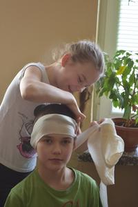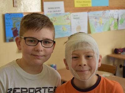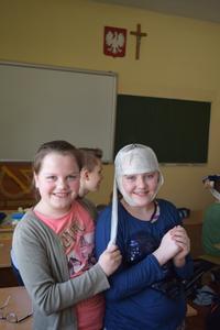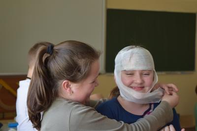 W środę Pani Basia Wróbel nasza higienistka szkolna uczyła nas opatrywać rany, zakładać opatrunki na palce, kolana i głowę.