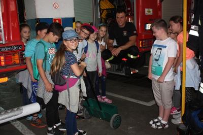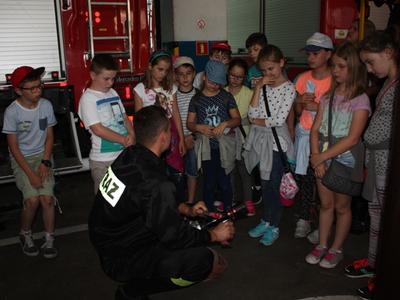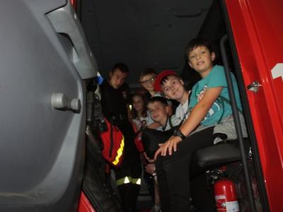 Uczniowie mieli także możliwość przebywania nie tylko w sali edukacyjnej, ale i w garażach. Poznali m.in. wyposażenie samochodów strażackich, ubiór strażaka biorącego udział w akcji, przygotowanie się do alarmowego wyjazdu.