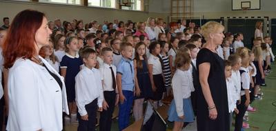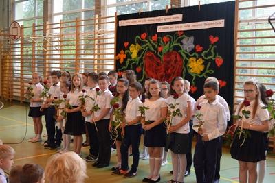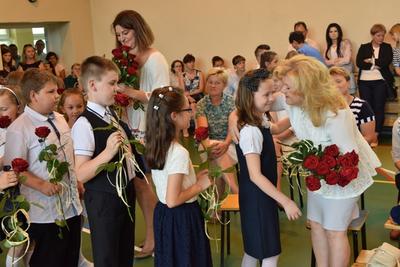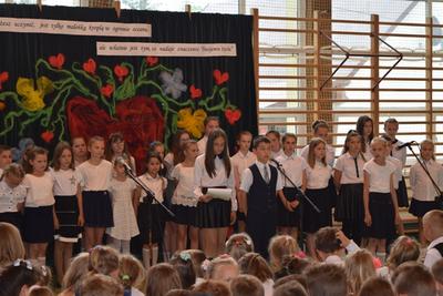 Tą myślą dnia 23 czerwca 2017 roku zakończyliśmy rok szkolny 2016/2017. Było to nietypowe zakończenie roku szkolnego. Uczniowie bowiem pożegnali odchodząca na emeryturę polonistkę Panią Annę Bussler, która pracowała wśród nas 39 lat. Przez te lata kształtowała u swoich uczniów miłość do języka ojczystego. Wiele pokoleń wychowanków pod Jej kierownictwem osiągało wysokie wyniki w olimpiadach, konkursach orograficznych, czytelniczych, recytatorskich na terenie szkoły, gminy i województwa. Pani Ania z wielką cierpliwością motywowała uczniów do systematycznego czytania lektur, dbałości o estetykę pisma… Dzięki pracy Pani Ani naszą szkołę opuścili młodzi pisarze – literaci: Kinga Kozieł, Bartłomiej Jucha.