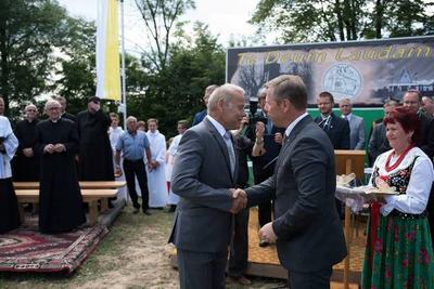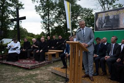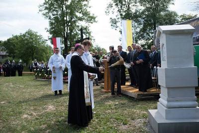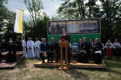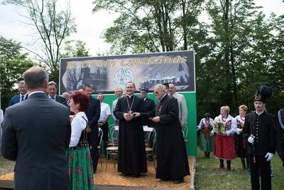 Po Eucharystii w orszaku procesyjnym – przy dźwiękach Orkiestry Dętej z Zygodowic - przeszliśmy na plac starego kościoła, by tam być świadkami odsłonięcia obelisku upamiętniającego Jubileusz. Wysłuchaliśmy okolicznościowych przemówień oraz licznych Listów Gratulacyjnych, które zostały przesłane na tę okoliczność od przedstawicieli władz, którzy nie mogli uczestniczyć w tej jakże historycznej chwili, a wśród nich był piękne słowa od Prezes Rady Ministrów RP Pani Beaty Szydło.