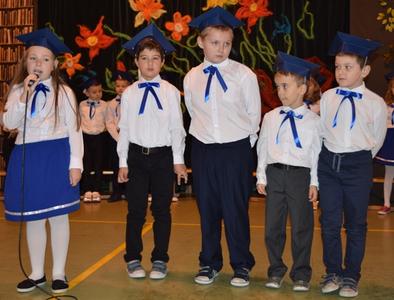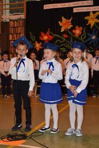 13 października to wyjątkowy dzień dla naszych najmłodszych uczniów – Pierwszaków. Tego dnia bowiem zostali prawdziwymi już uczniami naszej Szkoły. Przez miesiąc przygotowywali się do występów przed całą społecznością szkolną i zaproszonymi gośćmi. Uczniowie pod przewodnictwem wychowawczyni przygotowali inscenizację, zatytułowaną W Szkołolandii. W przedstawieniu pierwszakom towarzyszyli trzej uczniowie z klasy czwartej, którzy wcielili się w rolę króla, królowej oraz guwernantki. To oni prowadzili całą uroczystość. Mali uczniowie deklamowali wiersze, śpiewali piosenki, tańczyli. Swoim występem udowodnili, że mogą już podejmować odpowiedzialne zadania. Finałem uroczystości było złożenie uroczystego przyrzeczenia przy Sztandarze Szkoły. Następnie Pan Dyrektor Andrzej Zieliński dokonał pasowania na Ucznia naszej Szkoły. Dyplomy wręczył Wójt Gminy Tomice Pan Witold Grabowski.