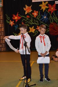 Po uroczystym powitaniu gości rozpoczął się wspaniały występ uczniów klasy pierwszej, który zakończył się uroczystym pasowaniem na ucznia. Było to ważne wydarzenie włączające ich do społeczności uczniowskiej naszego Zespołu Szkolno -Przedszkolnego w Witanowicach.