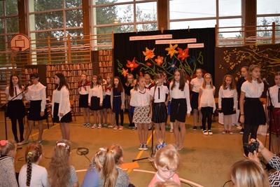 13 października w naszej szkole to również dzień podziękowań dla wszystkich nauczycieli i pracowników szkoły z okazji Dnia Edukacji Narodowej. Uczniowie Szkolnej Rady Uczniowskiej z wraz z zespołem wokalnym Karmelki w montażu słowno-muzycznym wyrazili swą wdzięczność za codziennie wkładany trud w nauczanie i wychowanie młodego pokolenia.
