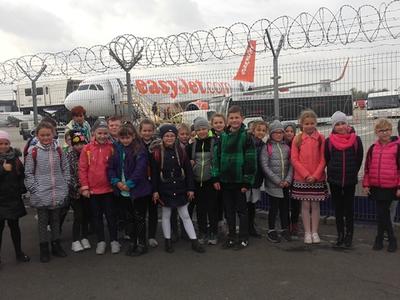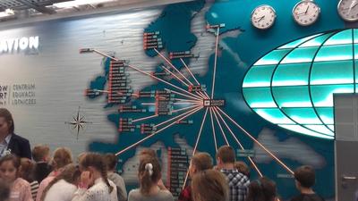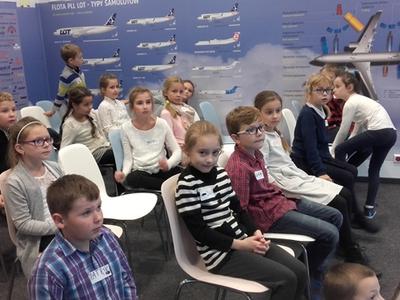 Kolejnym punktem wycieczki było zwiedzanie Międzynarodowego Portu Lotniczego im. Jana Pawła II w Krakowie. Zajęcia edukacyjne realizowane były w pomieszczeniach Centrum Edukacji Lotniczej zaaranżowanych na terminal pasażerski. Uczniowie poznali historię polskiego lotnictwa. Dwie panie Przewodnik, które oprowadzały grupę precyzyjnie omówiły ścieżkę pasażera z bagażem rejestrowanym, oraz niezbędne czynności, jakich musi dokonać pasażer przed rozpoczęciem podróży samolotem. Wielu uczniów było bardzo aktywnych, uczestniczyli w pogadankach. Niestety nadszedł czas powrotu do szkoły. Pełni wrażeń i emocji wyruszyliśmy w drogę powrotną.