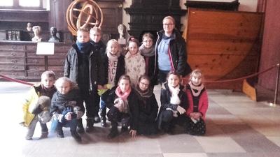 Pierwszym punktem zwiedzania było Muzeum Uniwersytetu Jagiellońskiego, które mieści się w zabytkowym gmachu Collegium Maius, najstarszym budynku uniwersyteckim w Polsce. W obiekcie, pod przewodnictwem pani przewodnik mogliśmy podziwiać m.in. dawną salę biblioteczną, reprezentacyjną Aulę Jagiellońską, skarbiec i pokoje profesorskie. Dużym zaciekawieniem cieszyła się sala Mikołaja Kopernika, a przede wszystkim jeden z pierwszych globusów w historii kartografii na którym zaznaczono nowy kontynent, Amerykę. Również z zaciekawieniem podziwialiśmy dziedziniec z grającym zegarem.