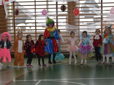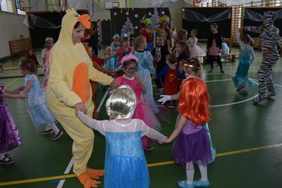 Karnawał to fantastyczny czas nie tylko dla dorosłych, ale i dla dzieci. A może przede wszystkim dla naszych milusińskich. Dla dzieci bal karnawałowy to dzień niezwykły, często wyczekiwany przez wiele tygodni. W naszym przedszkolu taki bal odbył się 8 lutego pod kierunkiem pani Doroty i pani Patrycji. Dzieci przebrane w różnorodne, kolorowe stroje wspaniale bawiły się w rytm muzyki. Podczas trwania zabawy odbyły się różne quizy i konkursy. Wspólna zabawa przysporzyła wiele radości naszym pociechom, a to było głównym celem naszego balu. Niezliczone księżniczki, towarzyszący im kowboje, Indianie, marynarze, królewny, motylki, myszki, smerfy, policjanci, smok oraz batman ze spidermanem, a także inne postacie z kreskówek opanowały salę gimanstyczną. W przerwie czekały na nas pyszne pączki i soczki. Kiedy czas zabawy dobiegł końca, dzieci z żalem opuszczały balową salę.
