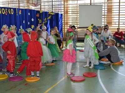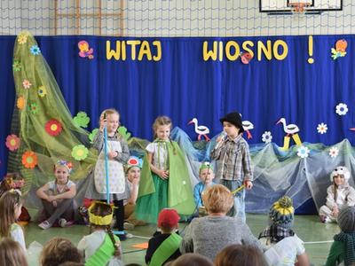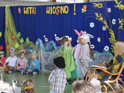 Tymi słowami piosenki Przedszkolaki z oddziału 5 i 6 latków powitały Wiosnę, a wraz z nimi cała szkoła. Po występie zorganizowano spotkanie z młodszym brygadierem Panem Tomaszem Kasperkiem z Jednostki Ratowniczo-Gaśniczej w Andrychowie. Pan Tomasz przypomniał m.in. o zagrożeniach wywołanych przez wypalanie traw.