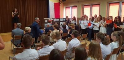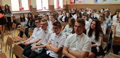 Dyrektor, Grono Pedagogiczne oraz uczniowie ZSP w Tomicach zaprosili uczniów z klasy VII naszej szkoły na uroczyste obchody 227 rocznicy uchwalenia Konstytucji 3 Maja. Akademia miała miejsce w Gminnym Ośrodku Kultury w Tomicach. Wśród zaproszonych gości byli: Wójt Gminy Tomice, Przewodniczący Rady Gminy Tomice, Dyrektorzy Szkół i Placówek Oświatowych z naszej Gminy oraz uczniowie najstarszych klas Szkół Podstawowych. Inscenizacja słowno - muzyczna przedstawiona przez uczniów klas gimnazjalnych naszej Gminy ukazała przybyłym gościom wydarzenia związane z uchwaleniem Konstytucji 3 Maja 1791 roku. Po przedstawieniu wszyscy zgromadzeni odśpiewali razem kilka pieśni patriotycznych.