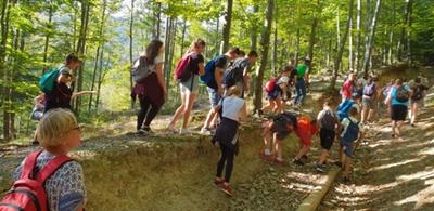 Koniec lata to także doskonały czas na odkrywanie naszej ojczyzny. W tym roku szkolnym Rajd szkolny odbył się w czwartek 20 września. Klasy VI, VII i VIII wyruszyły na Leskowiec – znajdujący się w Parku Krajobrazowym Beskidu Małego. Pogoda była wspaniała, humory dopisywały także. Wyruszyliśmy szlakiem niebieskim z miejscowości Ponikiew. Piękna i słoneczna pogoda dodawała sił. Była to doskonała okazja poznawania przyrody naszej ojczyzny. Ciekawym zadaniem dla wielu uczniów było pilnowanie szlaku turystycznego. Duże zdziwienie wywołało znalezienie Szlaku Serduszkowego, który poprowadził nas pod schronisko, a następnie na Groń Jana Pawła II. Tam odwiedziliśmy maleńkie Sanktuarium Górskie – dar ufundowany na 75 urodziny papieża. Następnie udaliśmy się na szczyt Leskowca. Zaobserwowaliśmy tam nowy obelisk, który powstał na pamiątkę 100 rocznicy odzyskania przez Polskę niepodległości, ufundowany z inicjatywy ZHP i SRR „ Niezłomny”. Przepiękna widoczność na szczycie pozwoliła nam zaobserwować widoki m.in. na Pogórze Śląskie, Pogórze Wielickie, Beskid Makowski. Później wróciliśmy na zasłużony odpoczynek pod schronisko. Tutaj z apetytem posililiśmy się gorącymi kiełbaskami.