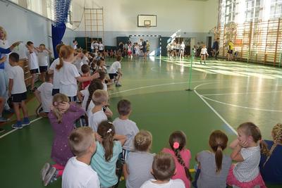 W naszej szkole 1 października 2018 r. obchodzono Dzień Chłopaka. Z tej okazji Samorząd Uczniowski wraz z Gronem Pedagogicznym przygotowali dla wszystkich wiele niespodzianek. Tego dnia świętowali wszyscy, zarówno chłopcy jak i dziewczęta. Zorganizowano zabawy, konkursy tak, aby każdy mógł się wykazać swoją sprawnością. Najciekawsze były zmagania między drużyną dziewcząt a drużyną chłopców. Rywalizowali ze sobą w następujących konkurencjach: skakanie na skakance, bieg slalomem, kozłowanie piłki itp. Po zaciętej walce zwycięzcami okazali się chłopcy – może dlatego, że dziewczynki stwierdziły, że z okazji ich święta zrobią im prezent. Na koniec wszyscy zostali obdarowani słodyczami. Jeszcze raz życzymy wszystkim chłopcom wszystkiego najlepszego:)