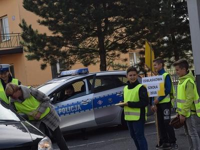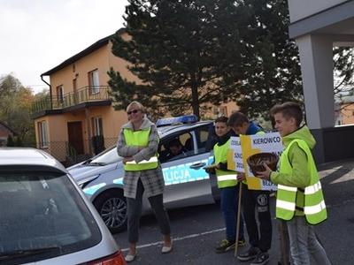 Dzięki współpracy z Komendą Powiatową Policji w Wadowicach – można było przeprowadzić takie działanie. Akcja ta ma związek realizowanym projektem Odblaskowa Szkoła 2018, który już kolejny raz organizowany jest w naszej Szkole. W akcji wzięli udział policjanci z Wydziału Ruchu Drogowego z KPP w Wadowicach, oraz uczniowie należący do Szkolnej Rady Uczniowskiej wraz z opiekunem. Policjanci zatrzymywali do rutynowej kontroli kierowców przejeżdżających obok naszej szkoły. Z uznaniem możemy podkreślić, że tym razem wielu z nich, za wzorowe przestrzeganie przepisów ruchu drogowego mogło otrzymać nagrodę od naszych uczniów - lizaka. Na drodze pojawili się tylko nieliczni kierowcy, którzy przekroczyli dopuszczalną prędkość. Skorzystali oni z "koła ratunkowego" i wybrali zamiast mandatu kwaśną cytrynę.