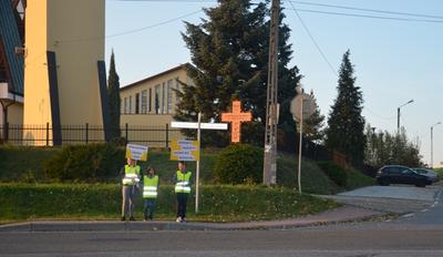 Z takim właśnie hasłem uczniowie naszej szkoły agitowali w środę 10 października 2018 roku przy skrzyżowaniu ulic Jana Pawła II z ul. Plebańską i ul. Kościelną. Okazało się, że ruch późnym popołudniem jest również duży w tym miejscu. A jest to skrzyżowanie, które przemierzają ludzie z Babicy, Lgoty i Witanowic. Wiemy, że jest to krzyżówka bardzo niebezpieczna. Często zdarzają się tu wypadki spowodowane nieprzestrzeganiem zasad ruchu drogowego. Nasza agitacja miała na celu wzmocnienie bezpieczeństwa pieszych w tym miejscu. Zauważaliśmy, iż kierowcy widząc nas, redukowali prędkość pojazdów. Niestety. Byliśmy również świadkiem wymuszenia pierwszeństwa przez pojazd włączający się do ruchu od strony ul. Kościelnej. Na szczęście nie doszło do kolizji. DRODZY KIEROWCY - APELUJEMY - byście dbali o nasze i swoje bezpieczeństwo, przestrzegając zasad ruchu drogowego w tym i innych miejscach na drogach.